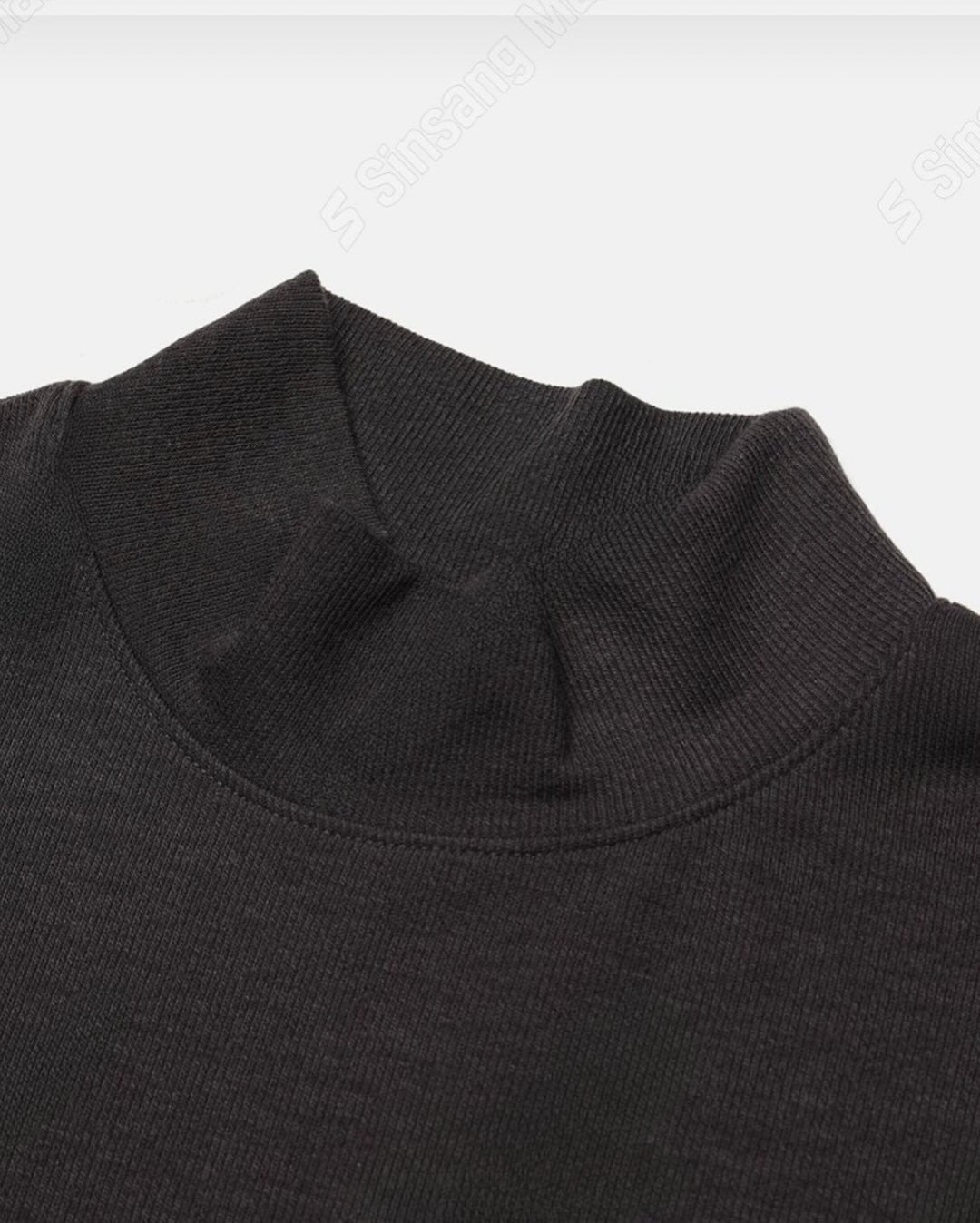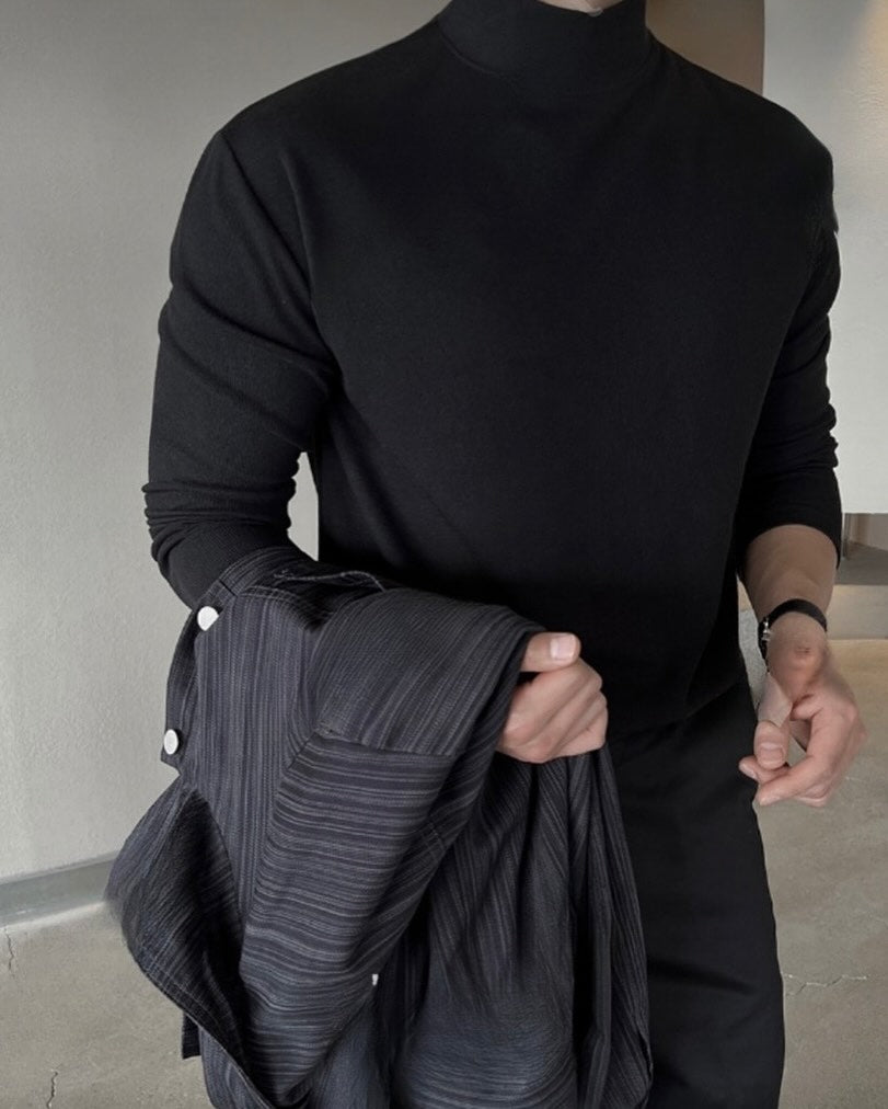 韓系細坑條半高領長袖 T 恤 修身版型 純色打底衫