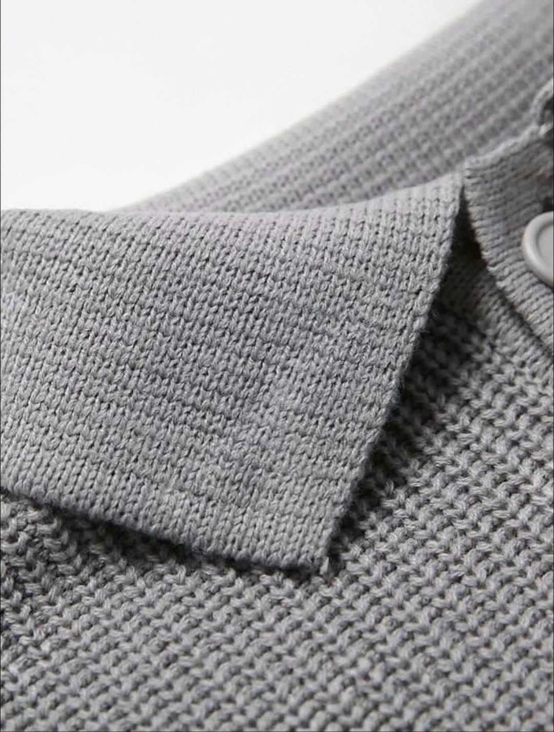 這件針織 Polo 衫是韓國文藝青年必備單品!經典 Polo 領設計結合立體針織紋理,打造復古文藝風格,無論單穿或疊穿都能展現獨特品味。