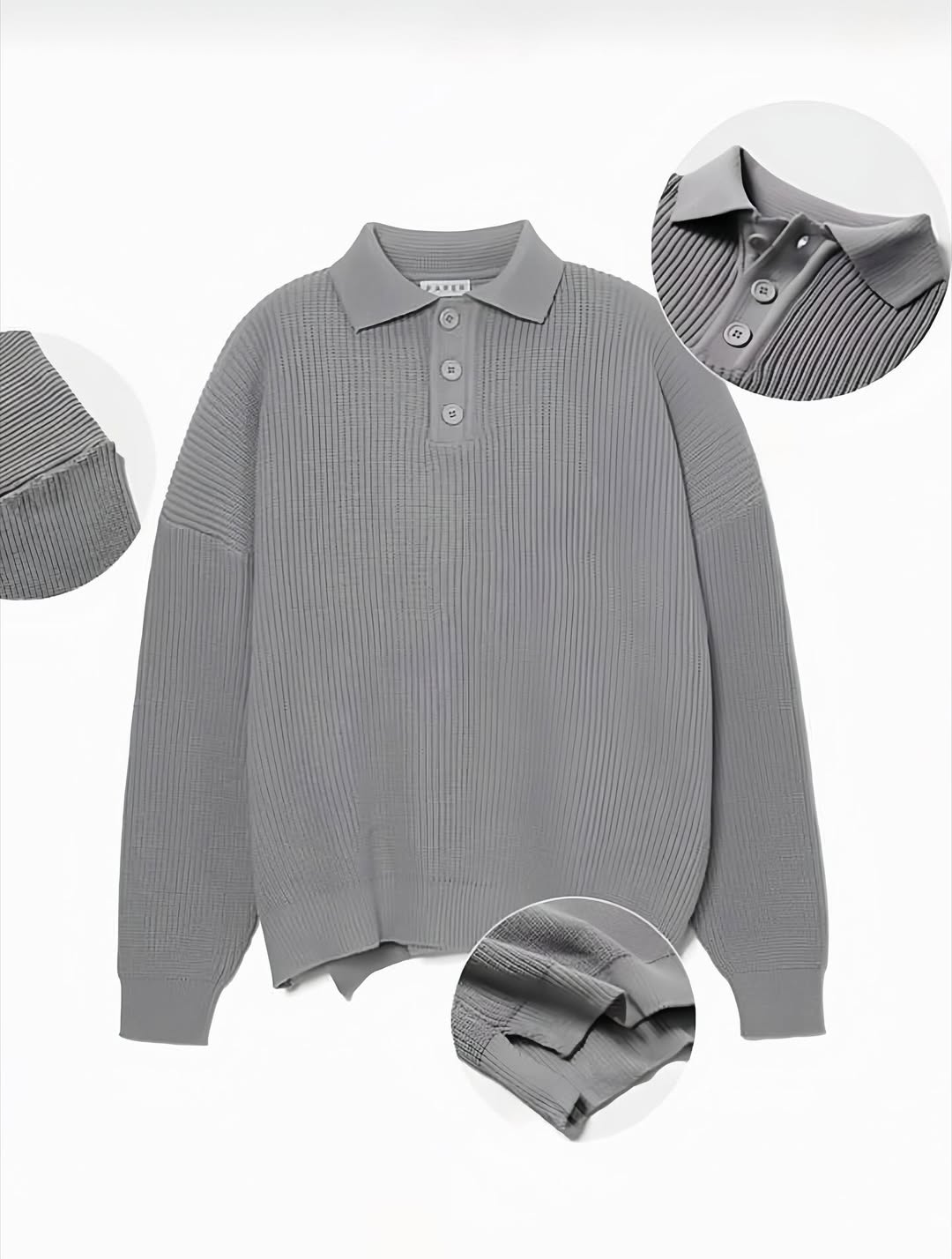 韓系針織 Polo 衫 寬鬆長袖 立體紋理翻領上衣